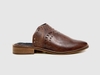 These pointed-toe brown mules are constructed with a 100% leather upper, insole, and partial lining, offering a structured fit with breathability and wear resistance. The lining includes an 80% leather and 20% textile blend, enhancing flexibility and interior comfort. A cushioned leather footbed supports prolonged wear across various conditions.