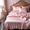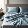 Crafted from 100% pure mulberry silk with a 20 momme weight, this duvet cover set offers a luxurious and comfortable sleeping experience. The silk's natural thermoregulating and breathable properties help maintain an optimal sleep temperature, while its hypoallergenic qualities make it suitable for individuals with sensitive skin.