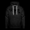 RAGSCLOTHINGLOGOBLK men’s premium hoodie, 80/20 cotton-poly blend, RAGS logo front print, adjustable drawstring hood, assorted heather options, Spreadshirt brand.