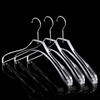 The Acrylic Suit Curved Hanger is constructed from high-grade acrylic Lucite, offering a durable structure with a clear, solid profile. Each hanger measures 15.5 inches in length and features a contoured shape with a 3/4-inch top thickness expanding to 1-1/4 inches at the shoulder, designed to preserve garment form.