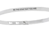 The "Be The Star That You Are" silver cuff bracelet is constructed from 316 stainless steel, measuring 4 mm and 7mm in width. It undergoes vacuum electroplating and manual polishing, resulting in a high-polish finish. The bracelet is lead-free and sold individually.