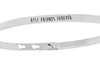 The "Best Friends Forever" silver cuff bracelet is crafted from rhodium-plated stainless steel, measuring 4 mm and 7 mm in width. It features an adjustable closure mechanism, allowing for a customizable fit. The bracelet is lead-free and sold individually.