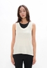 Sports bra tank top made from 90% recycled polyamide and 10% elastane; black sand and powder color; built-in bra; racerback design; adult sizes; sold individually.