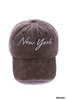 This New York cap is crafted from 100% cotton with a vintage-washed finish, providing a soft texture and a worn-in appearance. The fabric ensures breathability and comfort for extended wear. The cap features an embroidered "New York" logo on the front, adding a classic touch to its design.