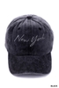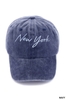 New York cap: Vintage-washed 100% cotton, adjustable brass buckle closure, 22–25" circumference, 2.95" brim, sold individually.