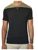 This crew collar T shirt features a two-tone design with dark green body and black upper yoke and sleeves. The fabric is constructed from a comfortable cotton (or cotton-blend) knit, offering breathability and daily wear durability. The garment is cut in a regular fit to ensure ease of movement and flattering proportions.