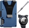 Money clip wallet made of aluminum alloy, holds up to 15 cards with an expandable elastic strap, RFID-blocking, AirTag-compatible, includes a screwdriver and an AirTag holder.