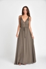 V neck maxi dress: 100% polyester, Grecian plunge neckline, layered bodice, one size (fits 0–12), available in Navy and Army Green, imported.